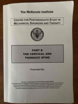 そこから少し込み入った話になりますが、MDTの組織はニュージーランドに本部があり、日本を含めた世界28ヵ国に支部を持ち、支部がない国であっても12ヵ国において教育講習会を行っています。すべての講習会(4日間のコースが4回と、2日間のコースが1回)を受講し、認定試験に合格すると、国際マッケンジー協会より認定資格が授与されます。大人になってから久々の試験を極度の緊張状態で頑張ってパスしたのが10年前。日々進歩する医療情勢の中で、MDTもアップデートされており、今回は「頸椎・胸椎に対するMDT」を再学習するために研修会へ参加してきました。